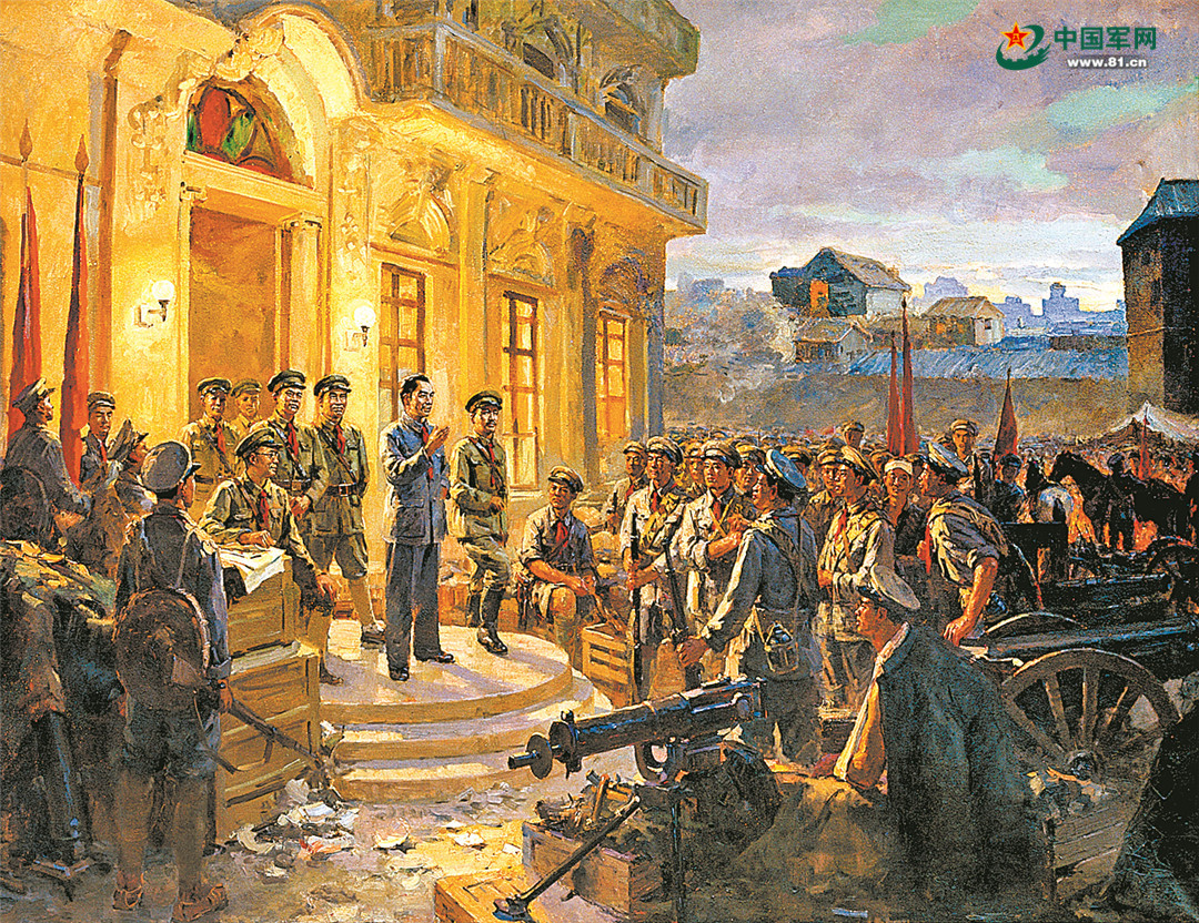 1927年8月1日凌晨,周恩来、贺龙、叶挺、朱德、刘伯承等率领党所掌握和影响的军队,在南昌发动起义,打响了武装反抗国民党反动派的“第一枪”。