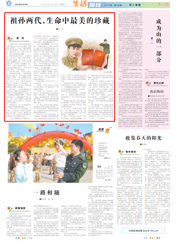 有一阵子,每当我在家人面前生动地复述爷爷讲过的战斗故事时,总能引来爷爷的夸奖。我窃喜这样的举动,竟能带来如此热烈的家庭氛围,便更加积极地表现。