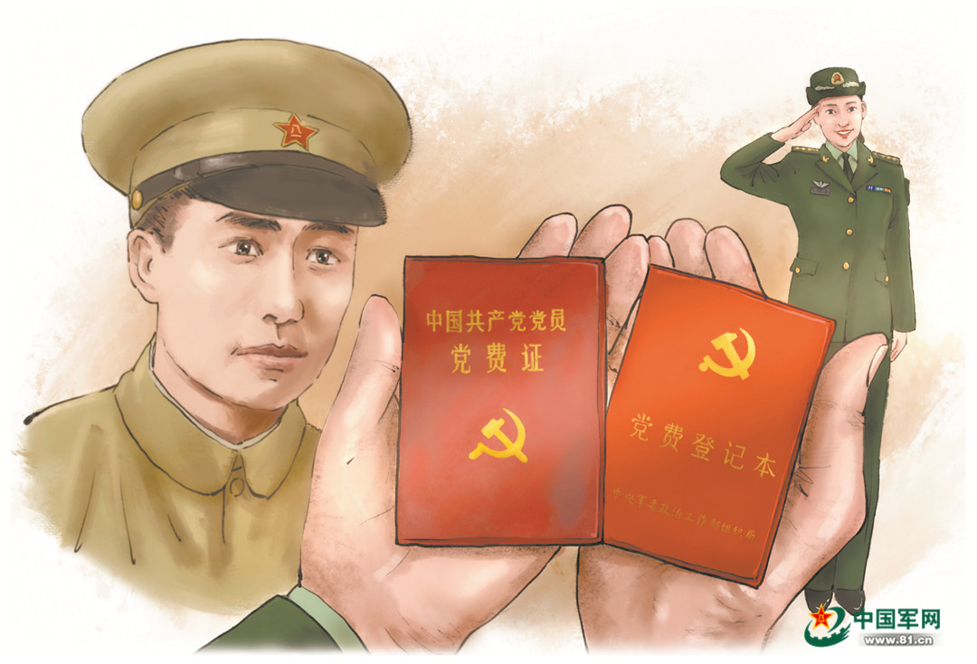 如今,我在“豆腐块”上端正的绿色军帽里,一直珍藏着两个小红本,一个是爷爷的党费证,一个是我的党费本,我每天都会将它们轻轻擦拭一遍。