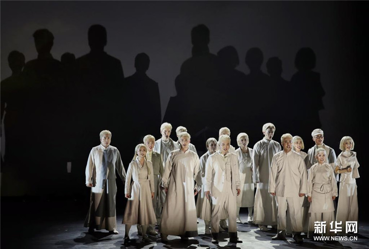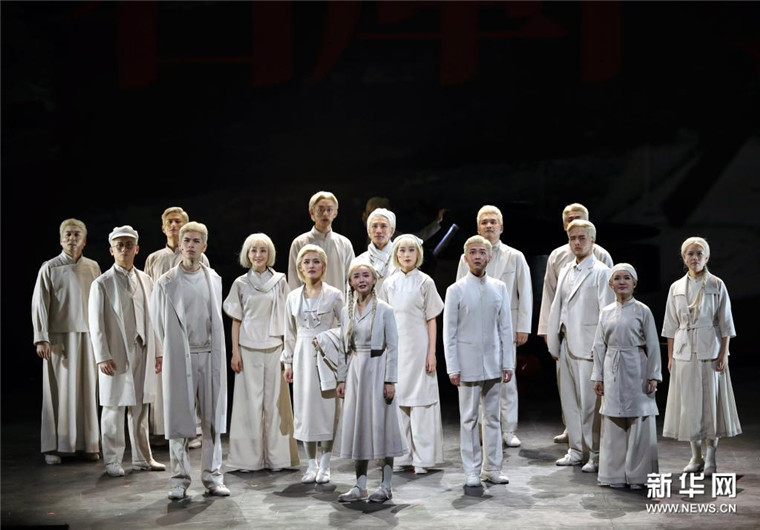4月26日,演员在表演原创红色戏剧《辅德里》。4月23日至26日,讲述中共二大历史和中共早期党员故事的原创红色戏剧《辅德里》在上海大宁剧院上演,青年艺术家们运用肢体、合唱、乐器等多种手段进行舞台呈现,打造一堂“好听好看又好懂”的文艺党课。新华社记者 刘颖 摄