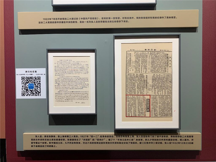 一个细节千万别错过:不少展品旁都粘贴了二维码,扫码就可以观看中央档案馆与新华社等媒体合作拍摄的红色档案微视频,向你娓娓道来档案背后的传奇。