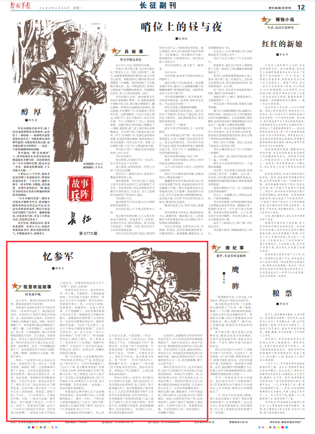 那时村里没有汽车,也没有拖拉机,是村支书骑着自行车送我到公社武装部报到的。毕竟自行车要快一些,当我们赶到公社时,步行而来的父亲、大哥还在路上。得到我们新兵已在公社集合提前向县城出发的消息,正在途中的父亲急了。60多岁的他横穿麦田,一路抄近路小跑,满脸淌汗、气吁吁地追赶上我们的队伍,急切地从内衣口袋里掏出一卷钱,拉着我的手说:“给,这些钱你带上,缺啥了就买!”望着脸上皱纹密布、头冒热气的父亲,望着勤劳坚强、辛苦持家的父亲,我的泪眼又一次模糊了视线。