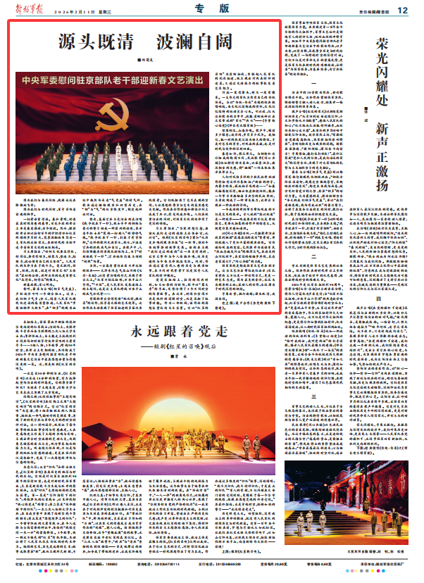 一切景语皆情语。春和景明,时逢最具时间质感的春节,百花齐放的舞台上亦是春意涌动、芳华绽放。然而,眼前的舞台却以壮行百年的肝胆情怀和红星照耀的岁月时光,笔墨澜翻地书写着一支军队的永恒荣光,在新时代的坐标中追寻着强军文化的血脉相承。