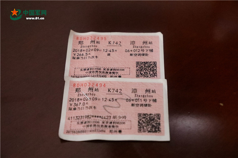 面对记者的提问,军嫂胡少玲道出了实情,早在一个月前,当我说要来陪王虎过年时,他就给我们订好了动车票。可两人从郑州到漳州,坐火车一个来回只要1200多元,而动车单趟就要1300元,家里孩子还在上学,需要用到钱的地方很多,花2000多元坐一个来回的动车,太奢侈了,这笔经济账不划算,所以当我知道王虎买好了动车票时,我心里的第一念头就是想办法把车票换了!