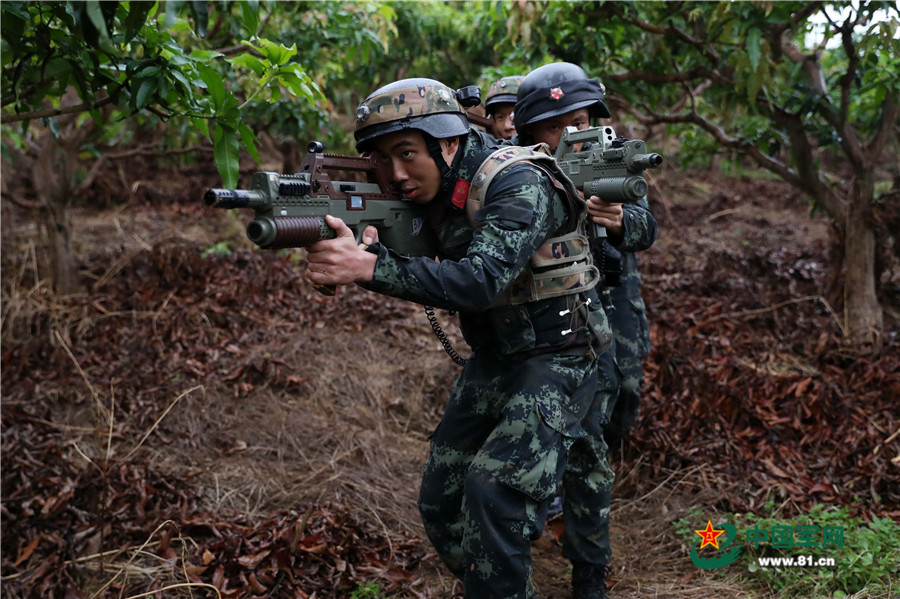 10月9日,武警南宁支队特战队员正在进行红蓝对抗训练。