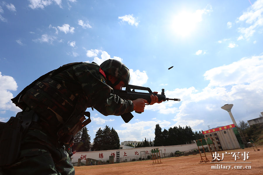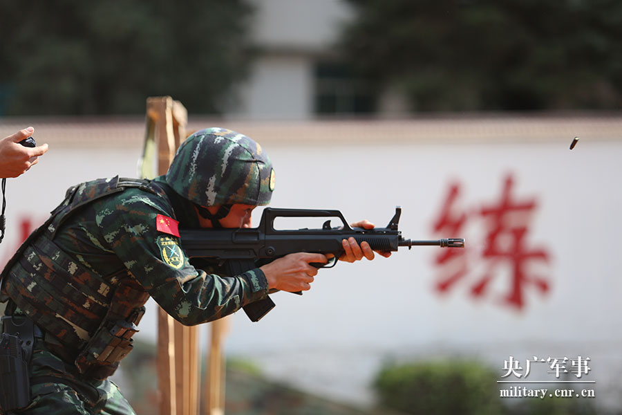 特战队员进行步枪换弹匣急速射击。胡程摄