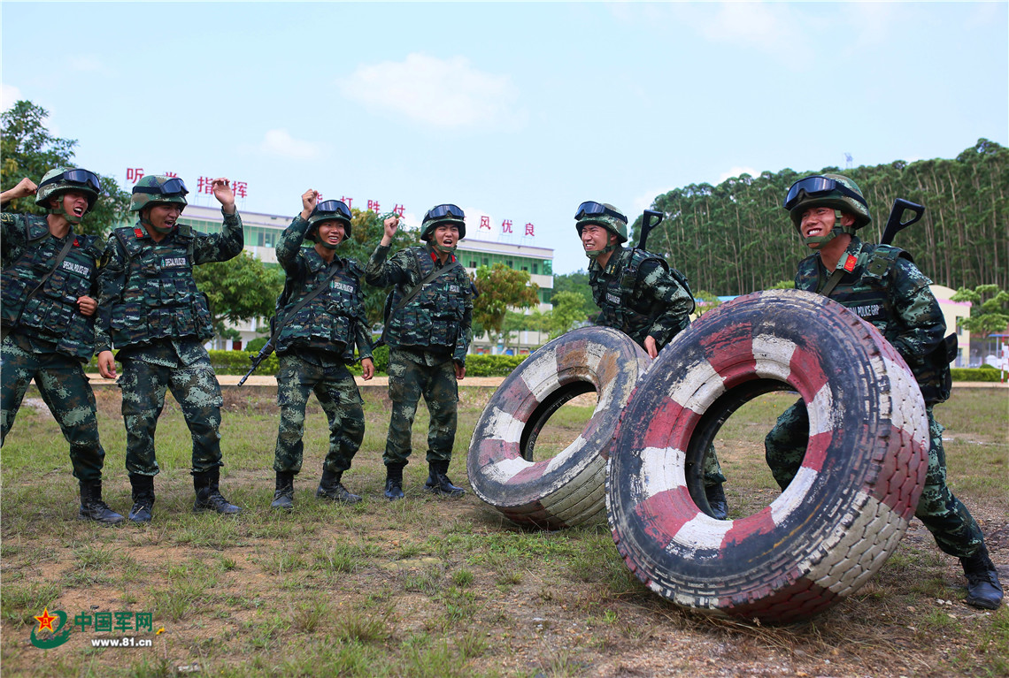 2019年4月24日,一名干部和一名士官在进行体能比拼。