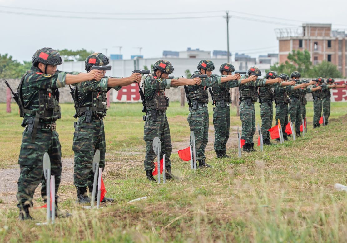 武警特战队员正在进行手枪射击训练。