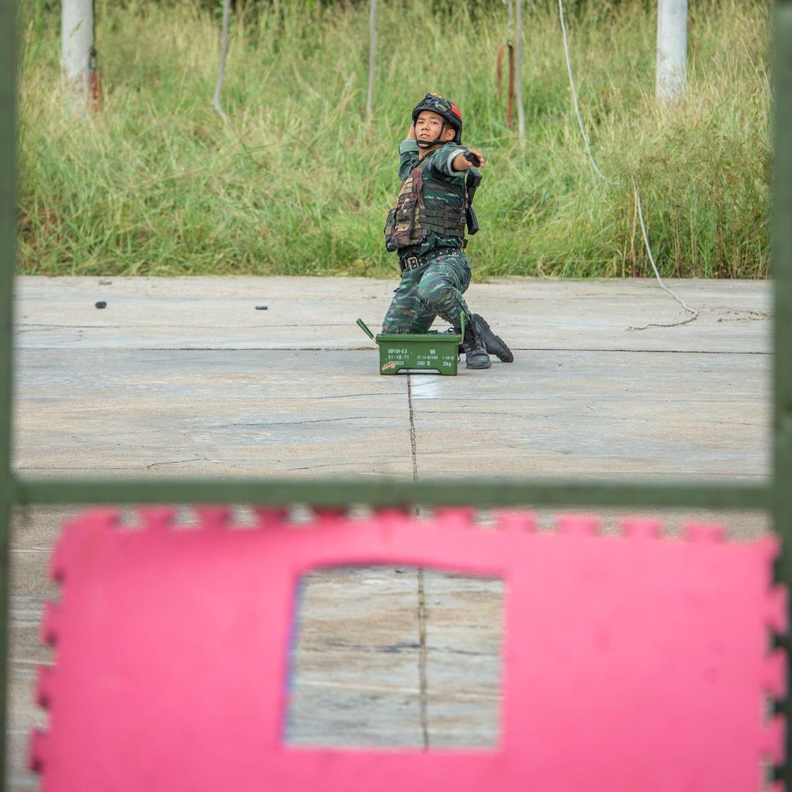 武警特战队员正在进行投弹训练。
