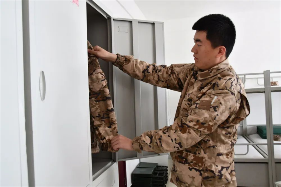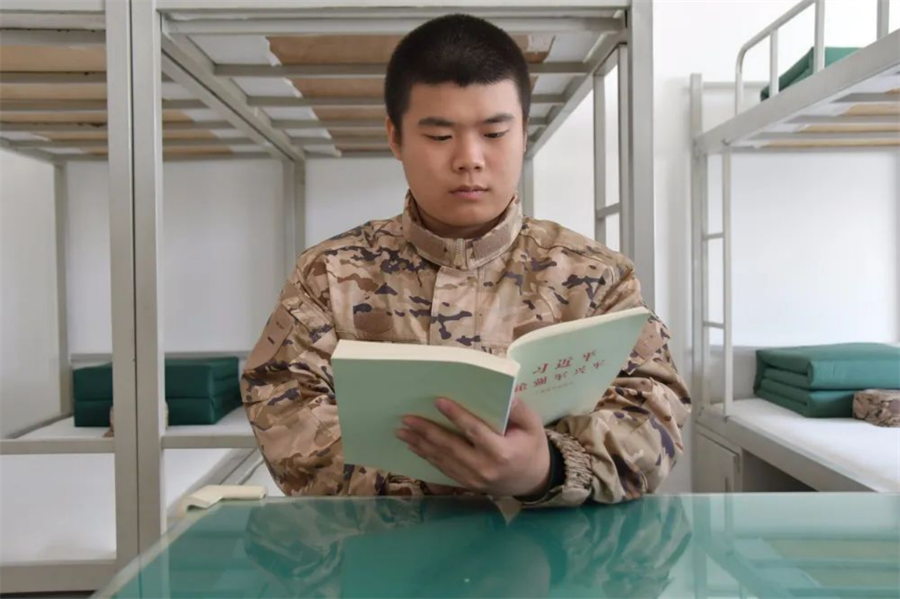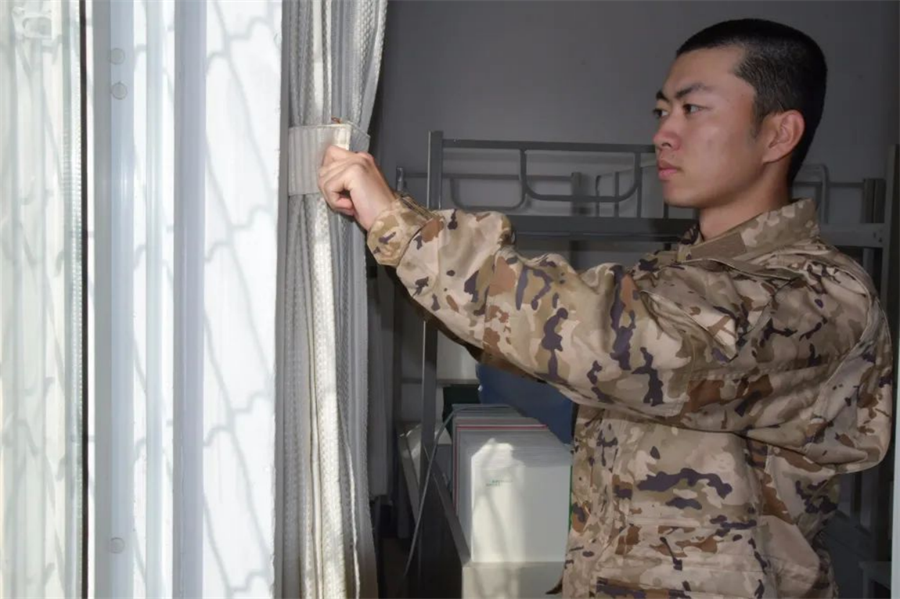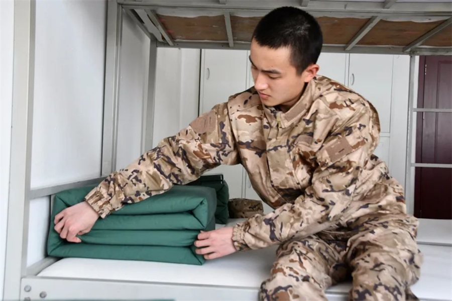 新兵周伯龙:干净整洁的宿舍、排列整齐的生活用品,方方正正的“豆腐块”,走进宿舍,眼前看到的这些,无一不令我震撼,我相信在这里我一定会变得更加优秀。