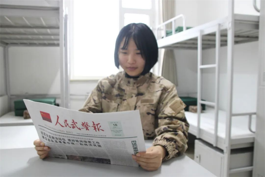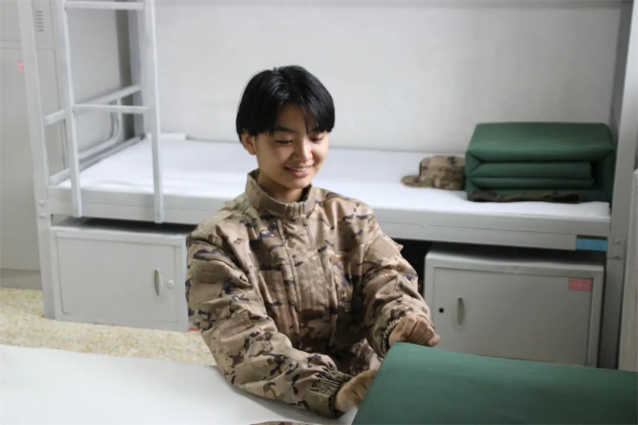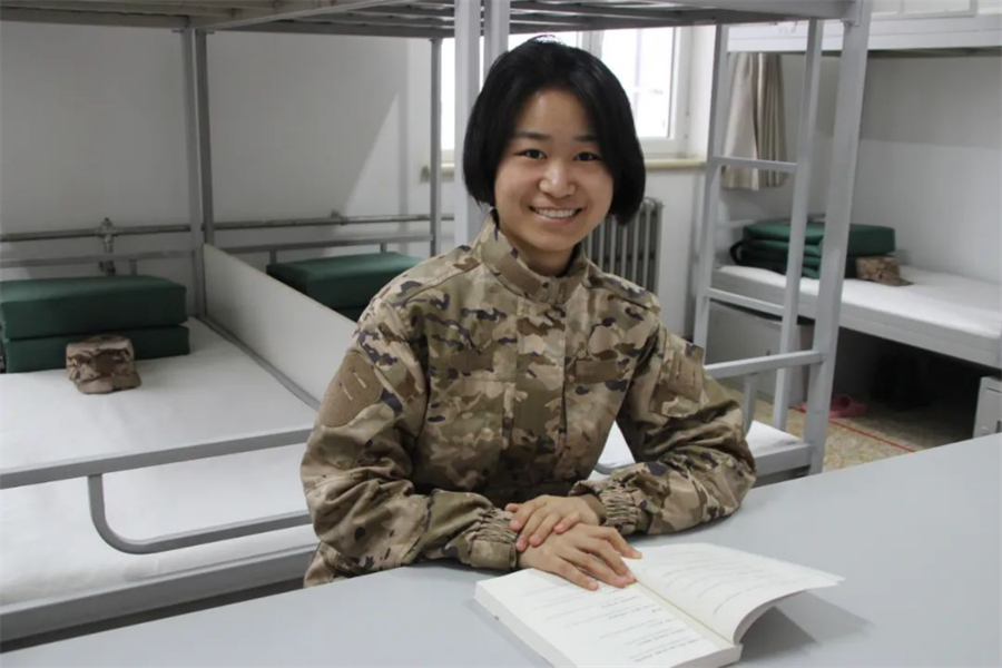 新兵张佳宁:这是我第一次与现役军人走的这么近,和电视剧里面的剧情感觉不一样,她们并不是一张张冷酷的脸,反而让我感觉她们像是一个个温暖的“大姐姐”,耐心、礼貌还很温柔,关心着我们这群初来乍到的“00后”。