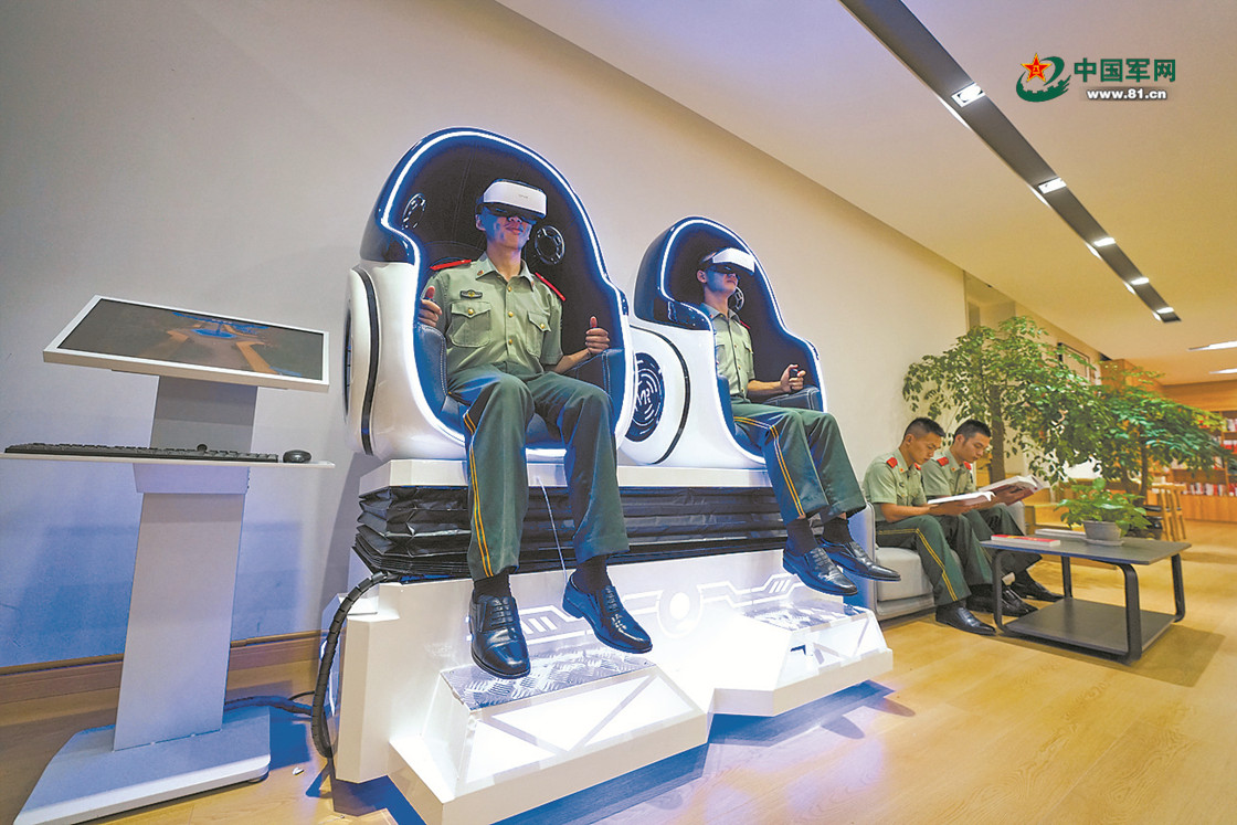 武警抚州支队官兵通过“VR云游”系统开展亲历式革命传统教育。黄祁明 摄