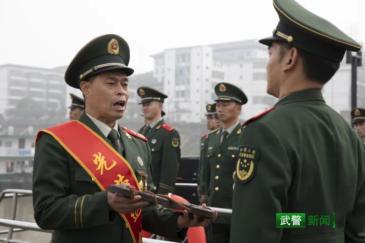 命令状承载大使命,新军衔续写新荣光。支队领导宣读李寿武退休、过孝华晋升警衔命令后,李寿武为新晋的一级警士长过孝华更换警衔标识。新肩章荣光熠熠,现场气氛庄重而热烈。