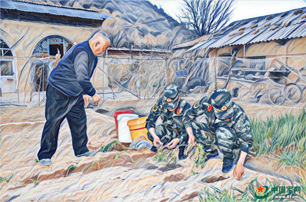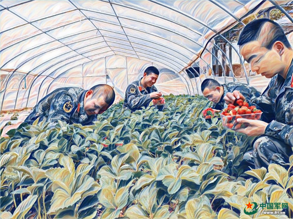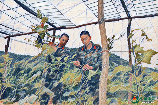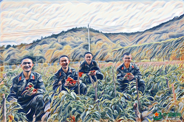 还捧着满满的果实蔬菜送给附近的乡亲们