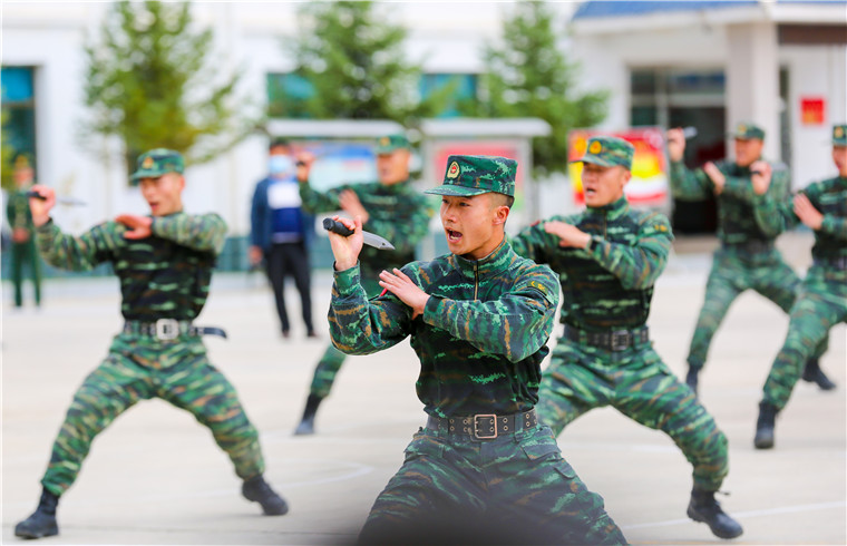 在官兵的带领下,这群特殊的客人走进营区。对于他们来说,这次军营之旅即将揭开部队的神秘面纱。擒敌拳、刺杀操,一令一动,威声震天,充分展现了军人过硬的军事素质,高昂的战斗精神也在此刻得到了淋漓尽致地体现,赢得了师生们的阵阵掌声。
