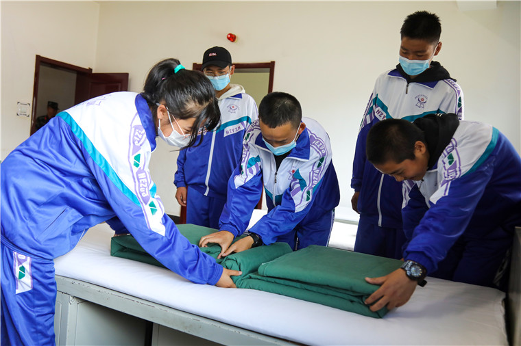 整洁的内务,整齐的物品,棱角分明的被子,干净整洁的床单,一尘不染的地面……走进班宿舍,一双双稚嫩的眼睛就被这里的“整齐划一”所吸引,他们积极向武警叔叔请教叠“豆腐块”的秘诀,官兵们耐心讲解,手把手教,让他们自己动手体验,感受不一样的青春年华。