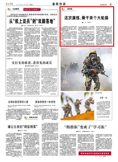 演练正式展开,吴启文首次充当“暴恐分子”,“神枪手”陆启铭改任突击组组长,以侦察见长的闫珍被要求临时担负小队指挥员……虽然演练中官兵出现各种不适应,但结束后,大家纷纷表示收获很多、感触颇深。支队根据这次尝试着手研究制订《军事演训岗位轮换办法》,推动部队在一定“战损”条件下继续保持战斗力。