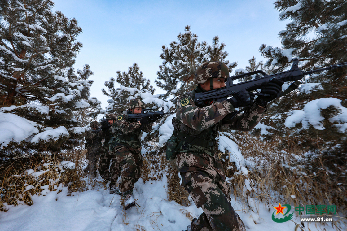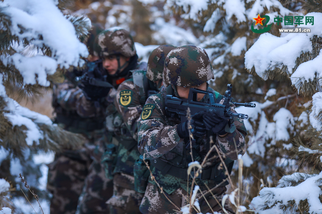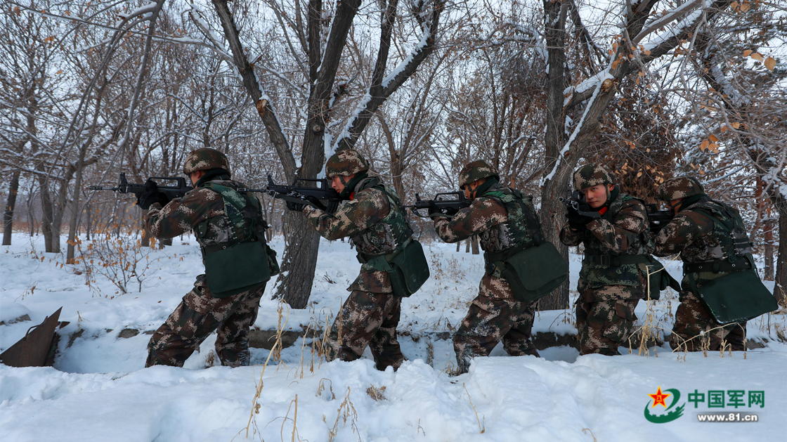 官兵协同配合,搜索前进。赵俊杰 摄