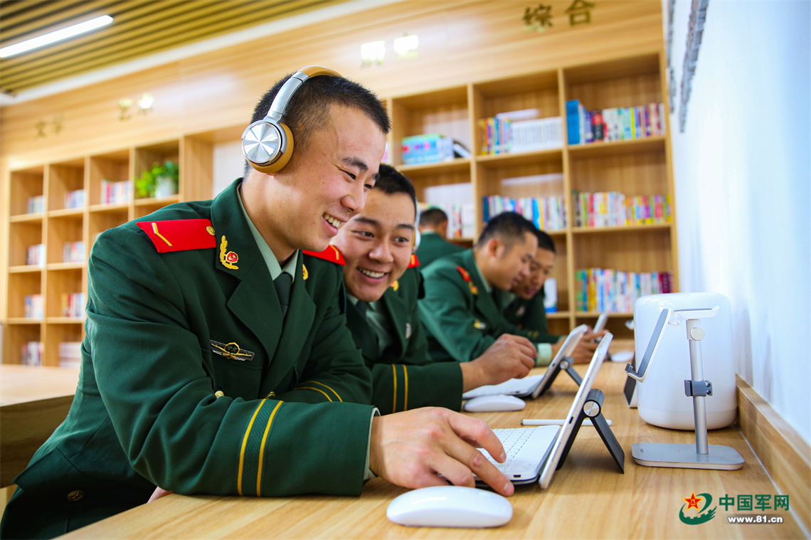 官兵使用平板电脑阅读试听。赵锡强 摄