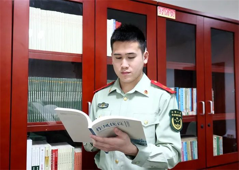 中士李永兴利用课余时间进行学习充电