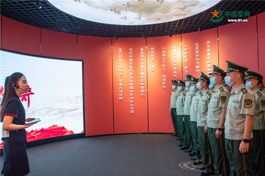 近日,武警广西总队机动支队组织500余名官兵走进广西新媒体中心红色传奇沉浸式体验馆,利用高科技声、光手段在线还原当年历史场景,使官兵在参观中感悟初心使命,赓续红色血脉。
