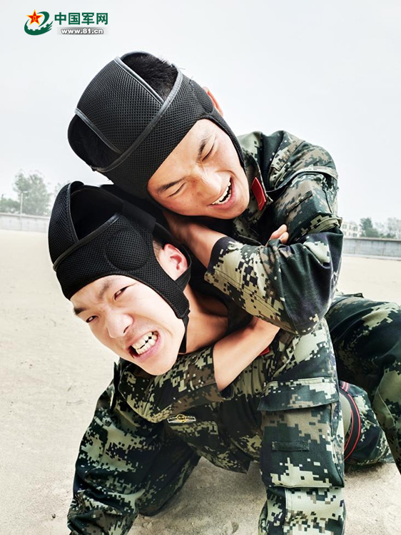 李硕在擒敌术训练中。王杰华摄
