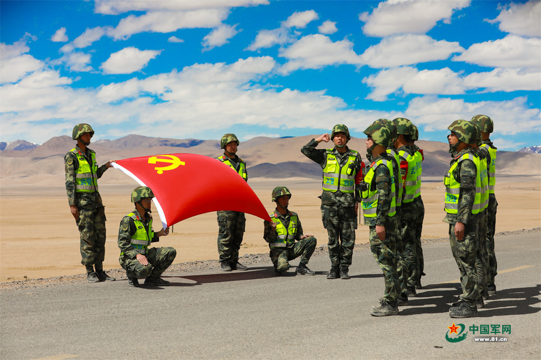 支队官兵在海拔5000多米的无人区重温入党誓词。陆文凯 摄