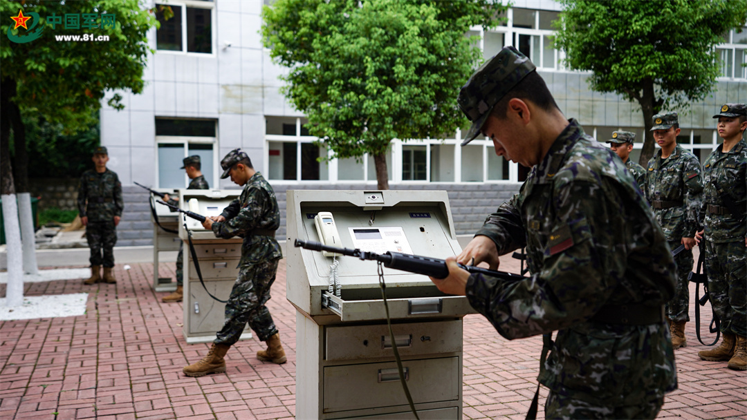 新训骨干正在教授新兵快速装填子弹。梁旭 摄