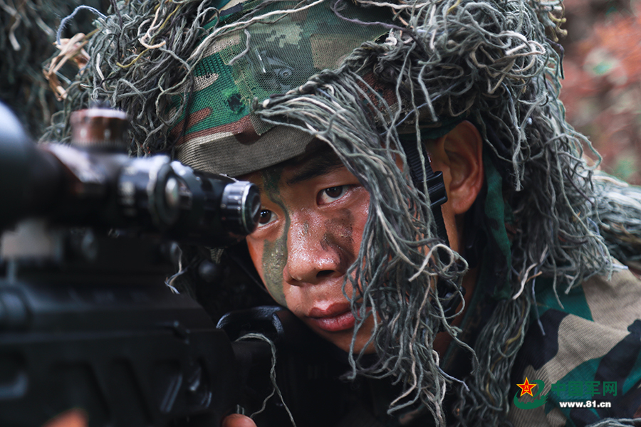 狙击手伺机实施精准狙击。蒋林岫 摄