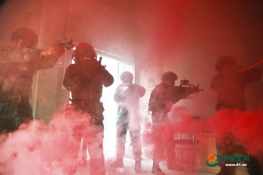 突击组突入房屋内。蒋林岫 摄