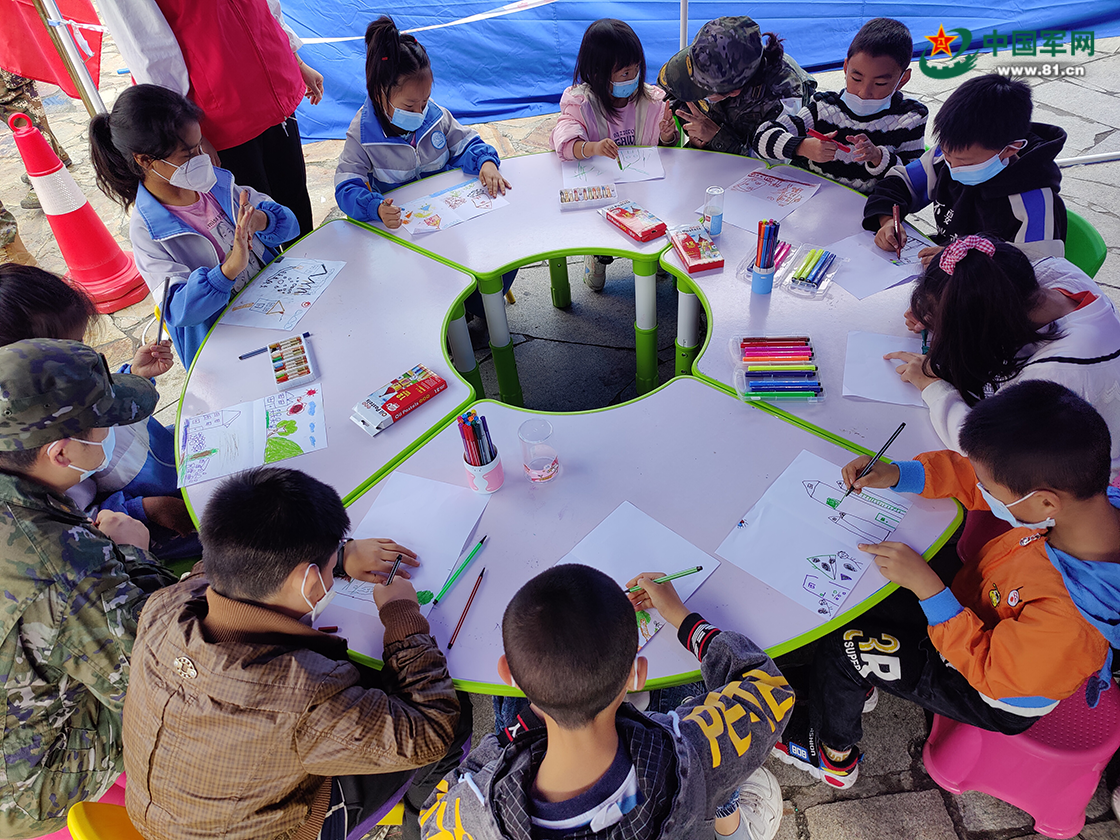 “小朋友,你画的是什么?”“是美好的家园。”“可我们现在住在帐篷里,怎么建设美好的家园?”“有超级英雄”“超级英雄是谁啊?”“是军人,我以后也要成为超级英雄……”