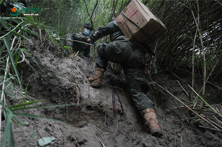 随着一条相对安全的路线被确立,位于山顶的共和村与外界的陆路联系打通了。第二天,陈煌和战友们一天向村子里运送了四趟物资,每人每趟运送的物资达50斤。面对记者的惊叹,陈煌十分平静,“平时中队牵引横越和攀登都训练得比较多,就是为了练有所用。”