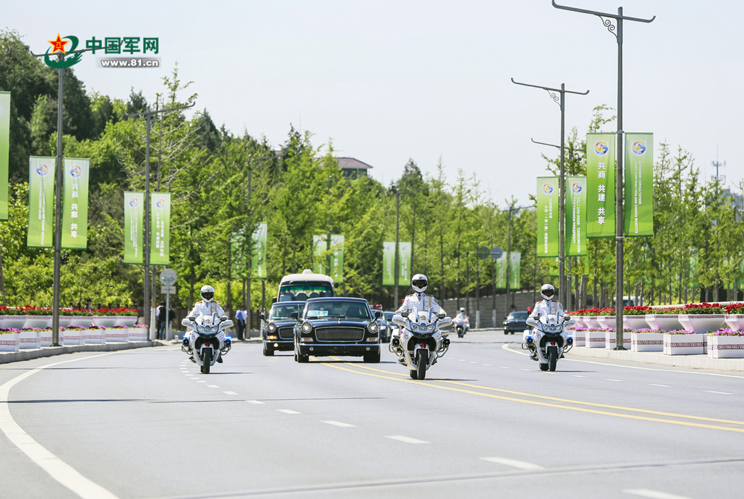 “一带一路”国际合作高峰论坛国宾护卫队员护卫外宾。安晓惠摄