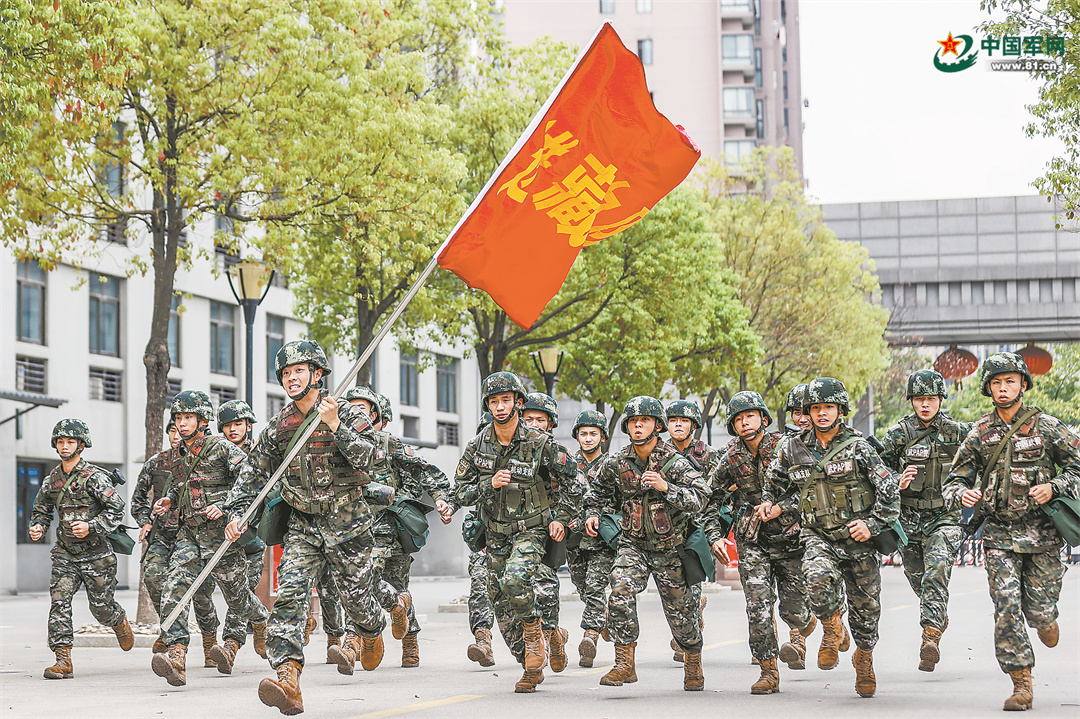 这是中队集体五公里武装越野的最好成绩。“咱们的队旗好像有魔力,看着它随风飘扬,我就感觉有一双大手在后面推着我!”返程路上,列兵李铭楷兴奋地告诉郑聪健。