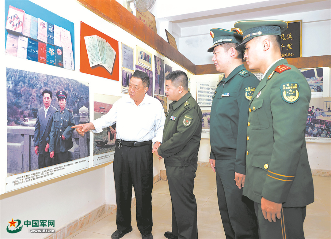 李德清(左一)给官兵讲述李向群生前事迹。雷辙 摄