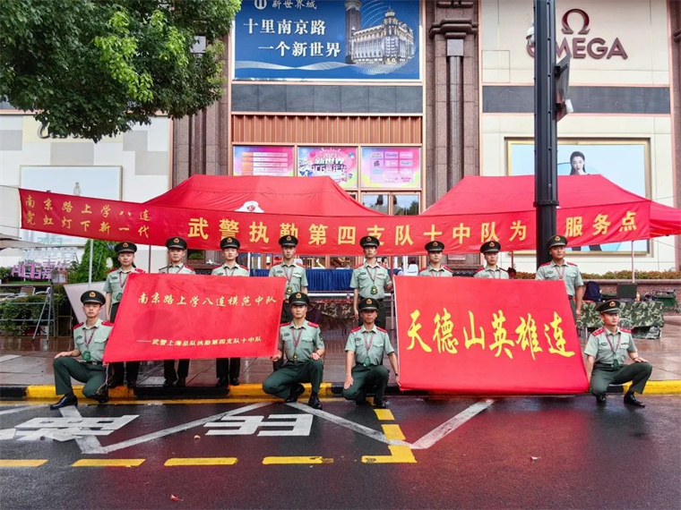 晨曦微露,旅游旺季的上海南京路早已游人如织。不少市民朋友惊喜地发现,新世界城为民服务点外,除了“南京路上学八连模范中队”的队旗,又多了一面“天德山英雄连”的旗帜。