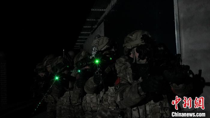 图为武警青海总队海北支队特战队员进行夜间课目训练。马寅翔 摄
