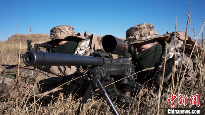 图为武警青海总队海北支队狙击手进行外围警戒。马寅翔 摄