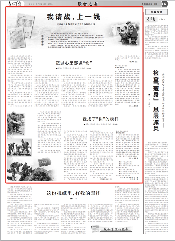 铮铮誓言,拳拳情意。穿上军装,他们就是战士。脱下军装,他们还是孩子。经本人同意,本期刊发两名年轻士兵的请战书并讲述背后的抗洪故事。