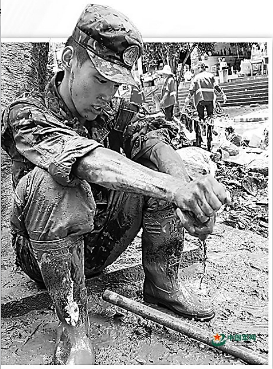 就在这时,一位记者扛着摄像机走过来,将我坐在地上拧手套的一幕拍摄下来,并对我说:“你身上沾满了泥巴……”