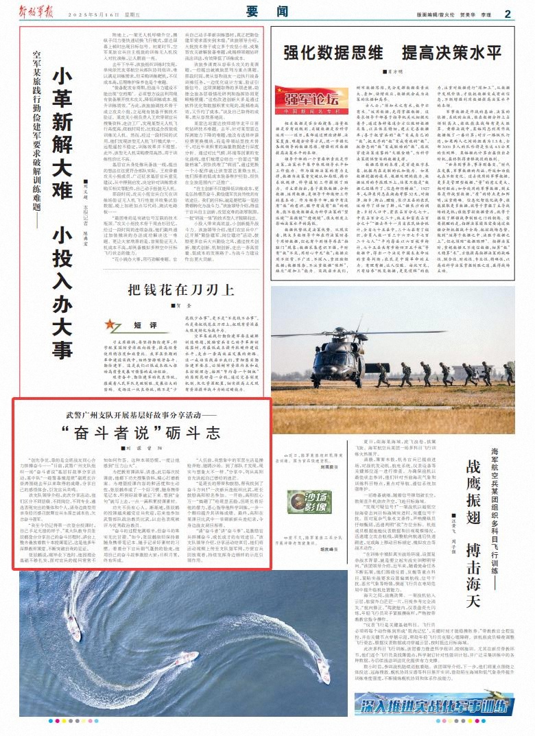 “创先争优,靠的是全班战友同心合力拼搏奋斗……”日前,武警广州支队组织一场“奋斗者说”基层好故事分享活动,某中队“一级警备模范班”副班长许崇涛围绕去年以来取得的成绩,分享自己的感悟体会,引发官兵共鸣。