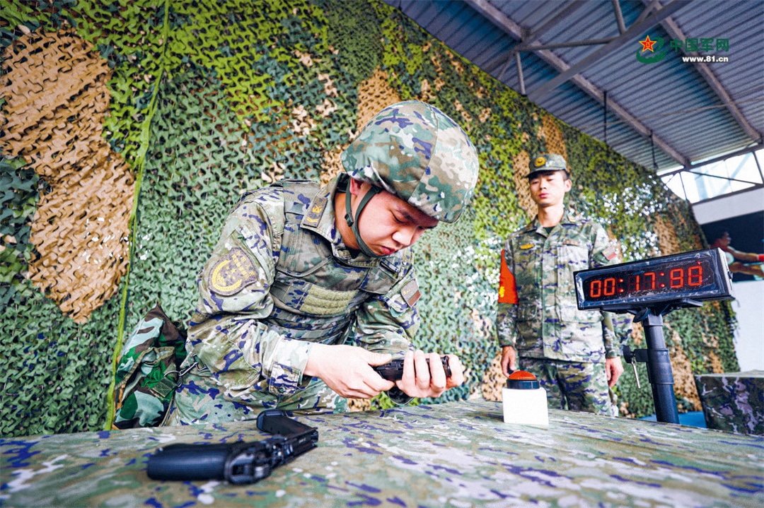 图为一名参考人员正在进行轻武器分解结合。唐忠飞 摄