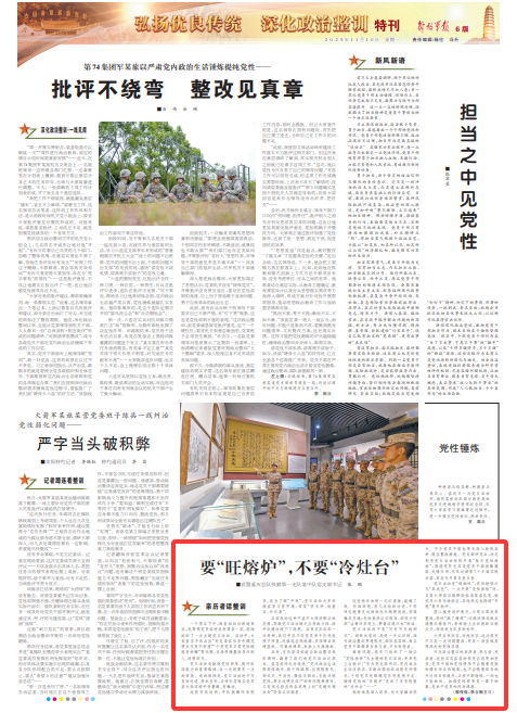 着眼问题,我专门组织了一场以“党性检修”为主题的党日活动,并率先上台检讨:“作为党支部书记,党内政治生活没抓实,导致近期组织功能有所弱化,个别党员先锋模范作用发挥不足。锤炼党性的‘旺熔炉’变成了没有热度的‘冷灶台’……”