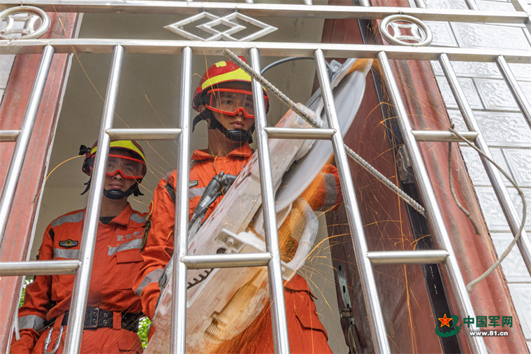 武警广西总队机动支队工兵分队官兵对障碍物进行破拆。吕奥 摄