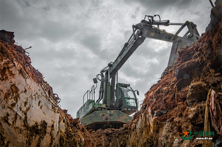 武警广西总队机动支队工兵分队官兵进行挖掘机应用作业。何其骏 摄