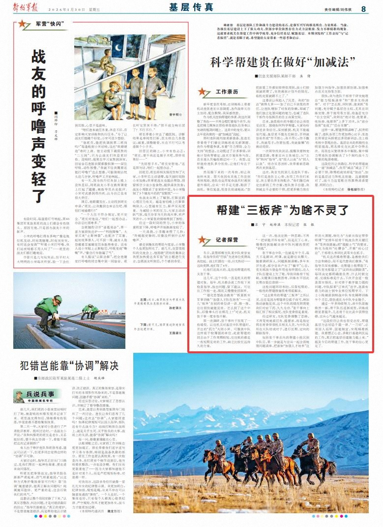 “‘强化思想政治教育’‘抓紧抓实军事训练’‘加强人才队伍培养’——这几‘板斧’在别的单位讲一讲、推一推,往往很快就能见效。怎么到了这个中队,好像拳头打在棉花上?”对此,机关张干事一度有些不解。