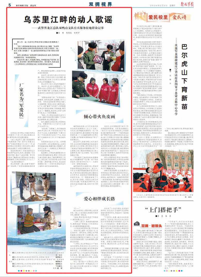 在这片黑土地上,军民携手耕耘,共同建设起产业兴旺、民族团结,老有所养、幼有所学的和美乡村。寒冬腊月,笔者走进三江之畔的村庄,聆听爱民为民、鱼水情深的动人歌谣。