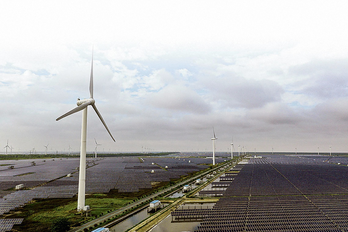 盐城东台市沿海滩涂综合开发示范区“风光渔”互补产业基地。新华社发