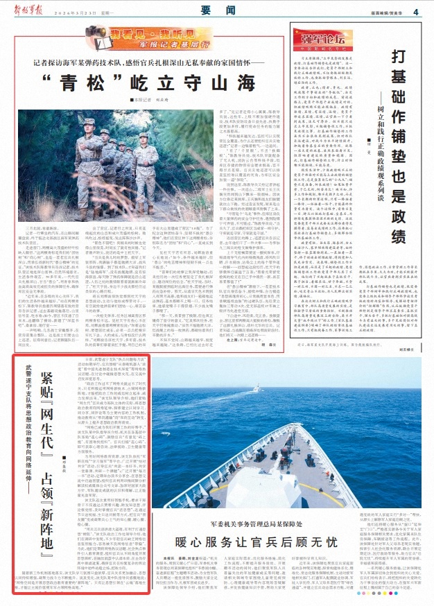 随着新工作机制落地落实,该支队学习氛围日益浓厚,官兵关系更加融洽,思想认同持续增强,凝聚力战斗力不断提升。谈及变化,该支队某中队指导员感慨地说:“网络空间是开展思想政治教育重要的‘新阵地’。只有让思想引领在‘云端’落地生根,才能让主流价值观牢牢占领网络高地。”