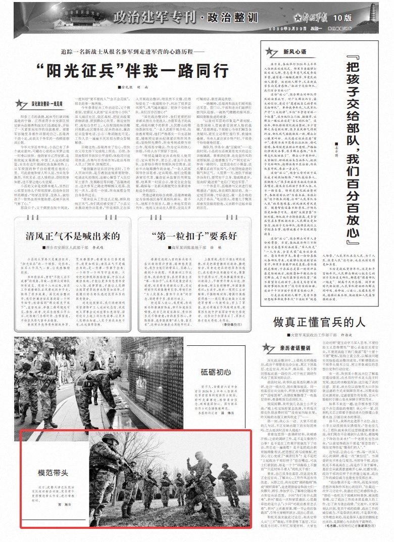 循着太爷爷足迹 新兵王嘉炜携笔从戎